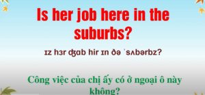 Is her job here in the suburbs? ɪz hɜr ʤɑb hir ɪn ðə ˈsʌbərbz? Công [...]
